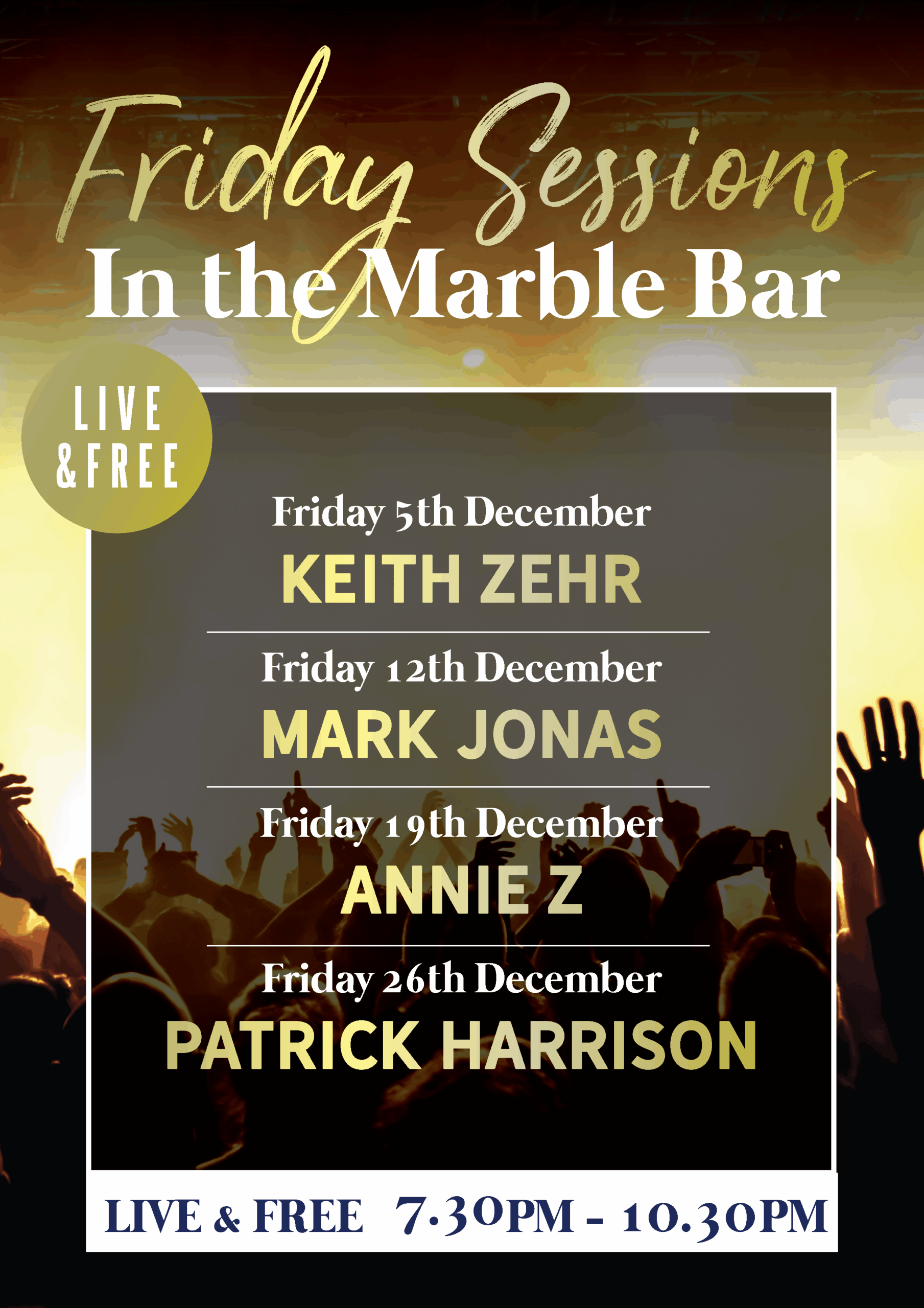 Kick off your weekend with live and free entertainment at the Marble Bar every Friday night. Enjoy performances from talented local artists as they bring you a mix of classics and contemporary hits. With a cozy atmosphere and great company, it’s the perfect way to unwind and start your weekend right.