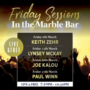 Kick off your weekend with live and free entertainment at the Marble Bar every Friday night. Enjoy performances from talented local artists as they bring you a mix of classics and contemporary hits. With a cozy atmosphere and great company, it’s the perfect way to unwind and start your weekend right.